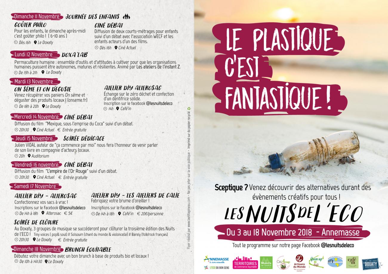 Un programme varié avec films, théâtre d'impro, soirée dédicace avec Julien Vidal, atelier cosmétique, alterosac, etc...