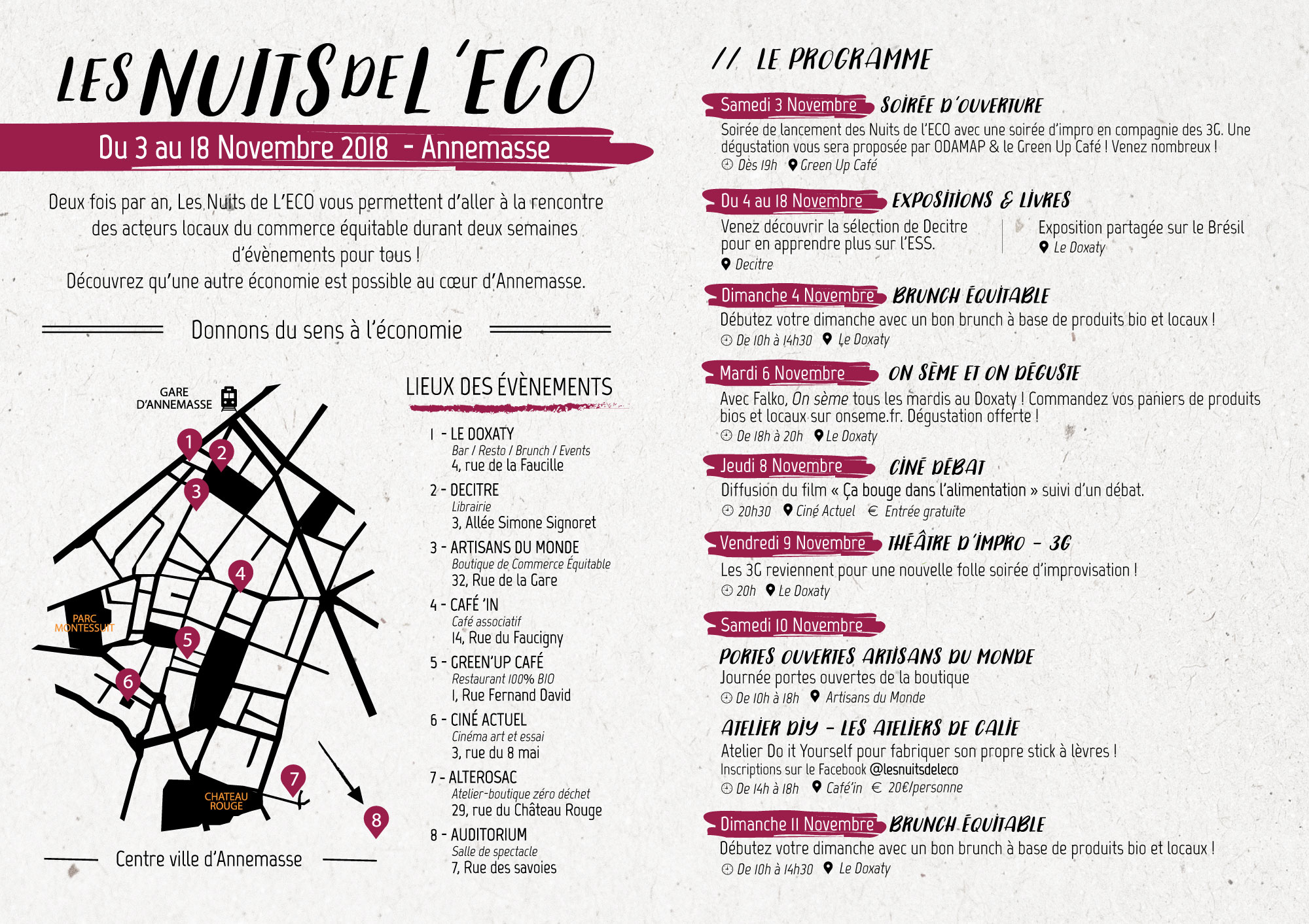 Cette dernière version déroulera des évènements du 3 au 18 novembre 2018 en différents lieux d'Annemasse pour sensibiliser à une économie plus juste et solidaire, le tout sous forme ludique et festive.