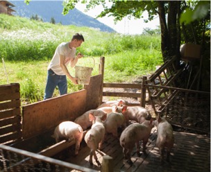 Nous les avons nourris de petit lait et de pain sec récupéré dans les boulangeries et depuis cet automne, ils mangent également des pommes de terre, légumes, châtaignes et autres fruits récoltés dans les vergers. Ils auront passé plus de 6 mois sur notre exploitation, au grand air.