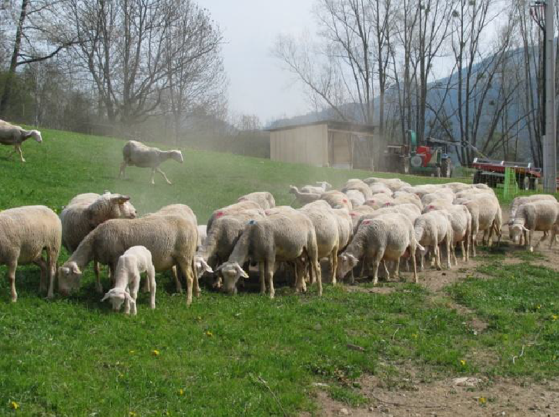 Les laitières pâturent autour de la ferme et les agneaux dans un petit alpage des Aravis et aux alentours de l’exploitation.