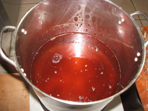 Le tout est chauffé jusqu’à atteindre le taux de sucre souhaité. |