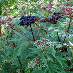 Sureau Hièble Plante herbacée. Les fruits toxiques sont dirigés vers le ciel. |